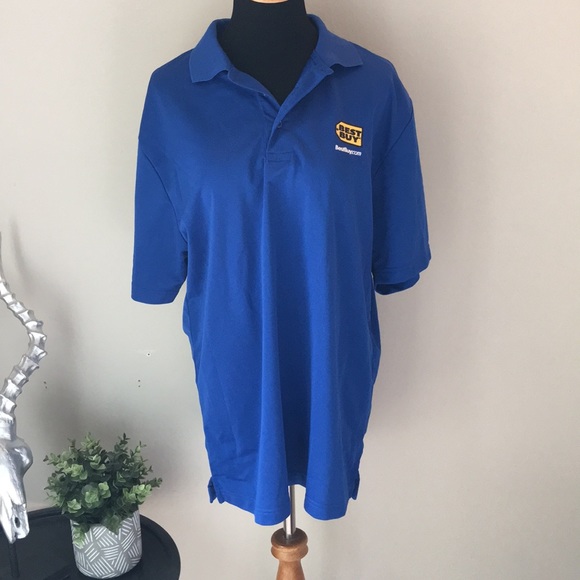 Best buy employee blue uniform shirt size large. The approximate length for size m is 295.